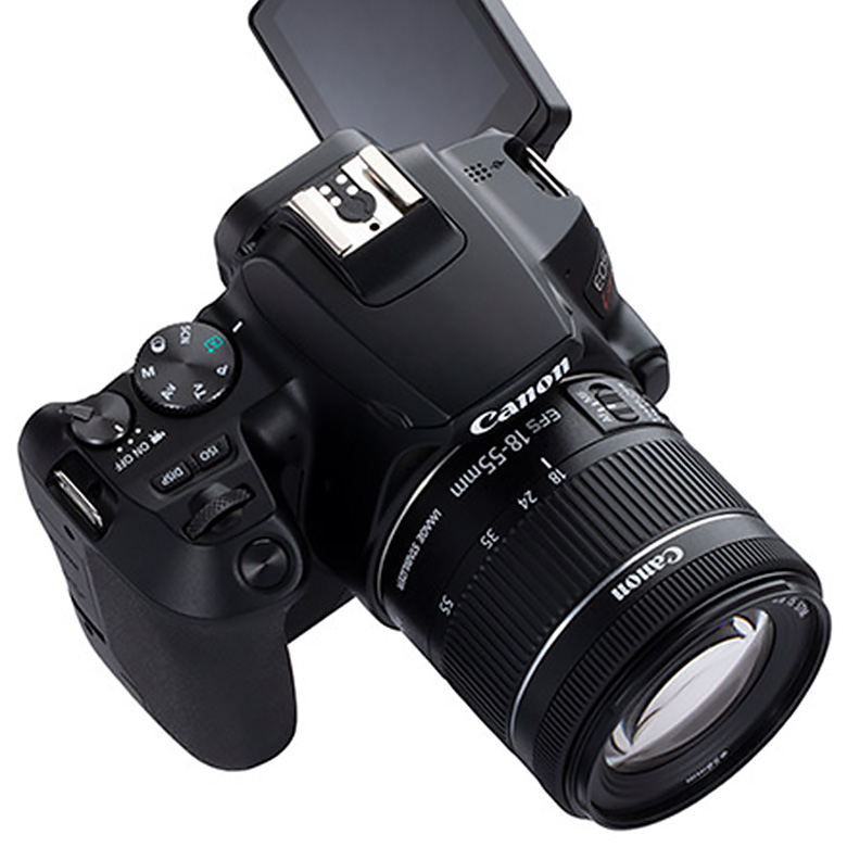 発売時、可動式液晶モニター搭載のデジタル一眼レフで世界最軽量となる、質量約449g(※)の小型軽量モデルです。しかも、モニターの可動方式は、自分撮りや三脚使用時にも対応できるバリアングル式。なので、さまざまな撮影ポジションやアングルでも、快適な撮影が可能です。
