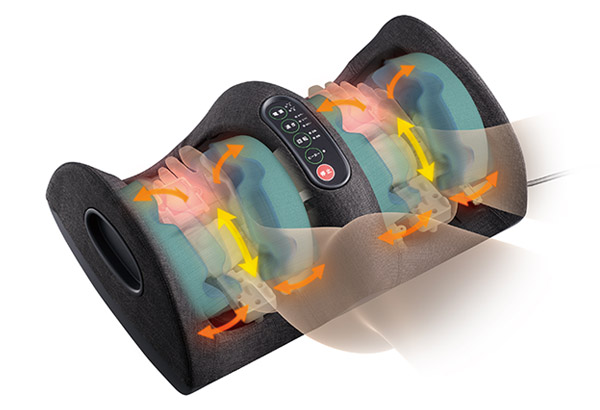 本製品は、足を挟み込んでマッサージする「もみプレート」と、突起のついた回転ローラーが足裏を刺激してくれる「足裏ローラー」の2つの機構を搭載しており、疲れた足をしっかり挟んで揉みほぐしてくれる足用のマッサジャー。足先部分にはヒーターを内蔵しているから、温めながら心地良くマッサージをしてくれる。