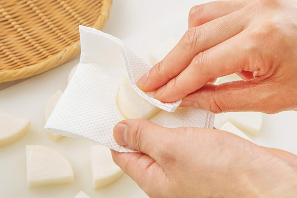 大根などの根菜は特に水分が多く含まれているので、しっかりふき取りましょう。