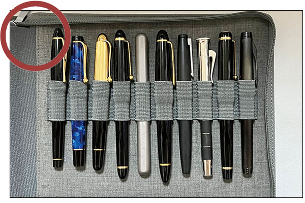万年筆は、ほかの筆記具と触れないようなケースに入れるのが原則だ。1本または2本しか入らないペンケースを使うのもいい。下記の写真はペリカンが提供する純正のペンケース。