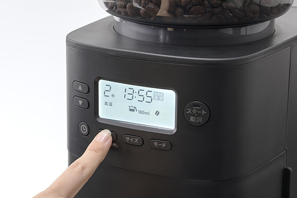 本製品には、自分の好みやライフスタイルに合わせた楽しみ方ができる機能が搭載されており、デカフェのコーヒをおいしく淹れることができる「デカフェ専用コース」の他、ミル単独で使える「見るモード」、挽く量を調節することで、好みの濃度に調節できる「挽き量調節機能」が用意されているなど、毎日手軽に本宅的なコーヒが楽しめる。