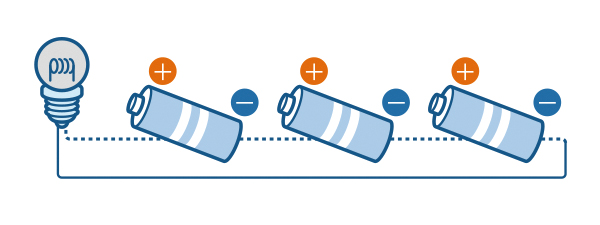 デンキウナギの体内には、「発電板」という器官がある。発電板を電池に置き換えてみよう。
