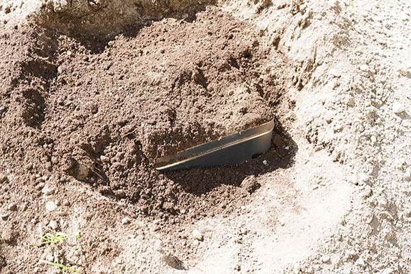 火から下ろして、冷却する際に空気と触れないように土の中などに埋めて、冷却します。写真は埋めている途中です。