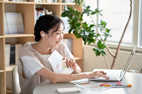 また、外音を自然に取り込みながら、BGM感覚で音楽を聴くことができるヒアスルー機能を搭載しているから、イヤホンを着けたまま、周囲の音声をマイクで取り込みつつ音楽を楽しむことが可能だ。音楽を聴きながら散歩や、スポーツ、家事やテレワーク時、通勤・通学時など周囲の音を気を配りながらリスニングしたい時に便利な機能となっている。