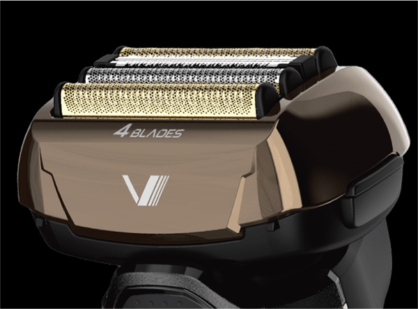 内刃には、耐食性に優れ、硬度の高い「冷間圧廷ステンレス銅」を採用しており、独自の加工技術により、刃先先端R:5/10,000mmを実現。さらに外刃には、広角90°のカット角が可能な広角エリア加工を施すことにより、ヒゲを効率的にカットすることができる。