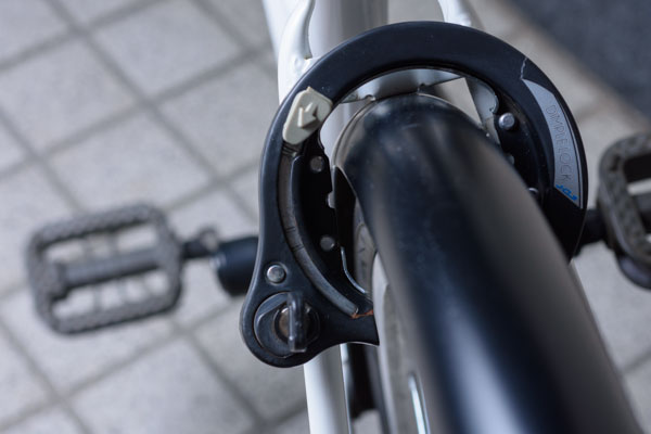 なお、シートステーに錠本体を固定する方式ですので、シートステーの後部にブレーキアームのあるスポーツタイプの自転車には装着できません。他社の同様の構造の錠前にはこのブレーキアームに装着できるアタッチメントが付属する製品もあるようです。