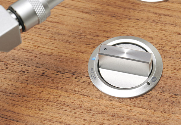 電源をオンにすると、ターンテーブルが回転をスタートし、スタンバイOKの状態となる。電源をオフにすると、回転が停止する。