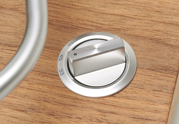 次に、回転数の切り替えボタンで、聴くレコードに合わせて、33 1/3回転、45回転を選ぼう。78回転に対応した製品もある。
