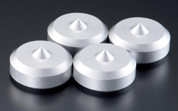 4個なら4点支持、3個なら3点支持となるが、いずれにしてもガタが出ないよう、平らな場所に設置したい。また、その構造(1ピースか2ピースか)や素材の組み合わせ、形状の違いで微妙な音作りが楽しめる。