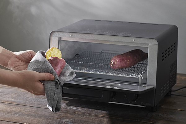 80~250℃という幅広い無段階温度調節機能と30分のロングタイマーを、2つのダイヤルで操作するシンプルな作りになっている。シンプルな操作性を実現しながら焼き芋や肉・魚料理、お惣菜の温め直しからお菓子作りまで、さまざまな用途に使用することができる。