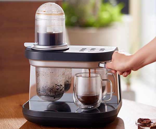 本製品の抽出方法は、浸漬式を採用しており、同社が長年培ってきたスチーム技術と電気ケトルに使用される熱制御技術を応用することで、透過式の抽出方法より抽出時間がかかるとされる浸漬式でも、瞬時にコーヒー粉全体を蒸らすことが可能で、短い時間で抽出できるようになっている。