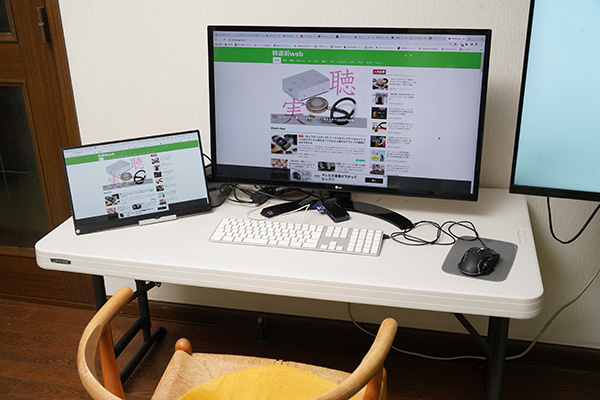 リビングに設置可能な120×60cmのデスクスペースで、それなりに快適に原稿書きなどをするために筆者は、32インチのフルHDモニターと15インチのモバイル用フルHDモニターの2台体制に移行しました。