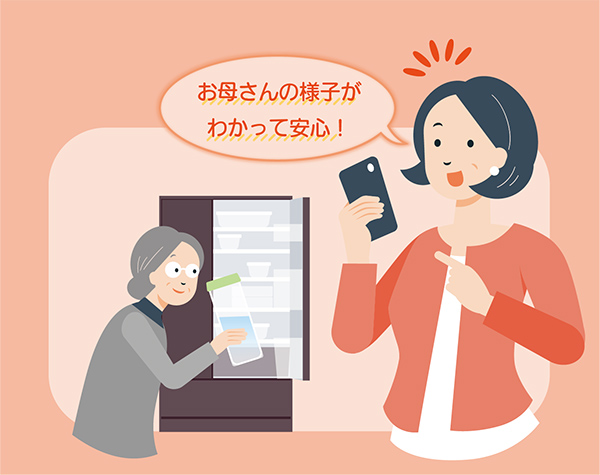 離れていても、扉の開閉状況で、生活状況を把握することができる。