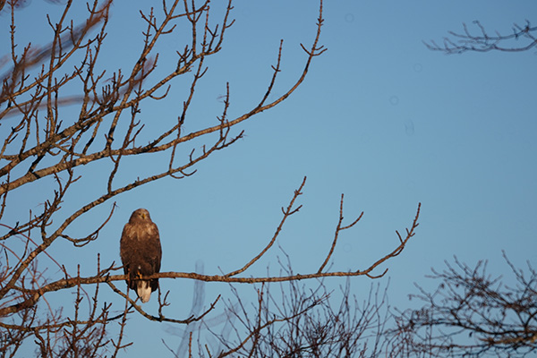 筆者が知っている限り、オジロワシやオオワシが警戒しない程度の距離、肉眼だとちょっと見づらい程度離れたところから、木の枝などに止まった彼らを撮影しても、意外と気にせず撮影させてくれることが多いです。そのため、三脚で固定したカメラの位置を変えず450mm相当の「Tokina SZ 300mm PRO Reflex F7.1 MF CF」、900mm相当の「Tokina SZ 600mm PRO Reflex F8 MF CF」、1,350mm相当の「Tokina SZ 900mm PRO Reflex F11 MF CF」でオジロワシを撮影した画像をそれぞれ掲載します。