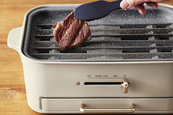 油跳ねでべたついたテーブルの拭き掃除なども、油跳ねの減少によってラクに行えるようになり、煙も90%を超える割合で軽減できるから、室内に残るニオイも減らすことができる。油跳ねや煙が気になって、家ではなかなかやらない焼肉も、気軽に自宅で楽しむことができる。