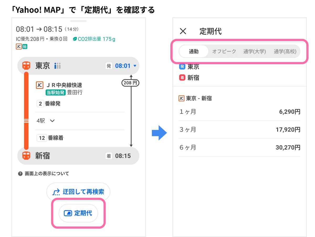 また、本機能の提供に合わせ「Yahoo! MAP」においても、通勤や通学などの定期代の表示に対応します。