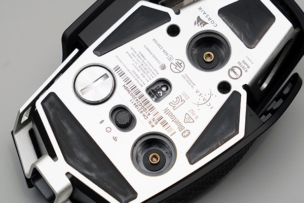 また、接続方式はワイヤードのUSB接続(TYPE A to Cケーブル付属)、ワイヤレスでの接続が2種類。現在もっとも一般的なマウスのワイヤレス接続であるBluetoothは4.0以降に対応。バッテリー駆動時間は約120時間。これに加えて CORSAIRの独自技術である「SLIPSTREAM」にも対応しており、1ミリ秒以下の転送速度を実現し、動きやクリックを最大2倍高速の2000Hzで転送するといいます。こちらはバッテリー駆動時間は約90時間。