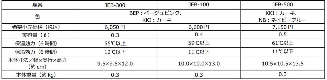 持ち運びに便利なコンパクトサイズの0.3L、満足感のあるレギュラーサイズの0.4L、ボリュームたっぷり大容量0.5Lの3サイズ展開。幅広い世代で使えるように、近年人気の高いカーキをはじめ、ベージュピンクとネイビーブルーのカラーバリエーションが揃っている。