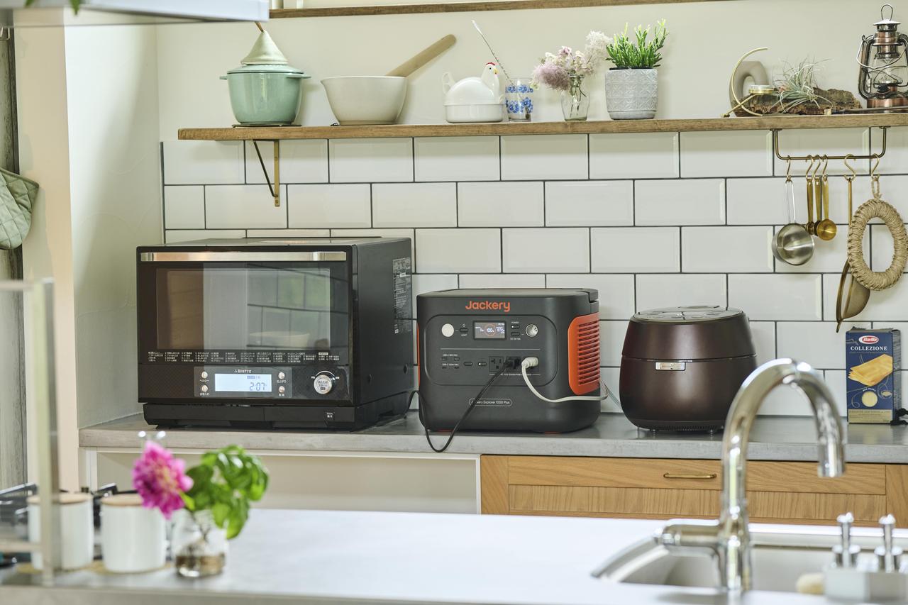 ジャクリ・ジャパン/Jackery Japan『Jackery Solar Generator 1000 Plus /ポータブル電源 ソーラーパネル セット』(税込202,800円・発売中)は、1264Whの大容量で、たいていの家電が当てはまる合計出力2,000W(瞬間最大4,000W)のパワフルな電源製品だ。