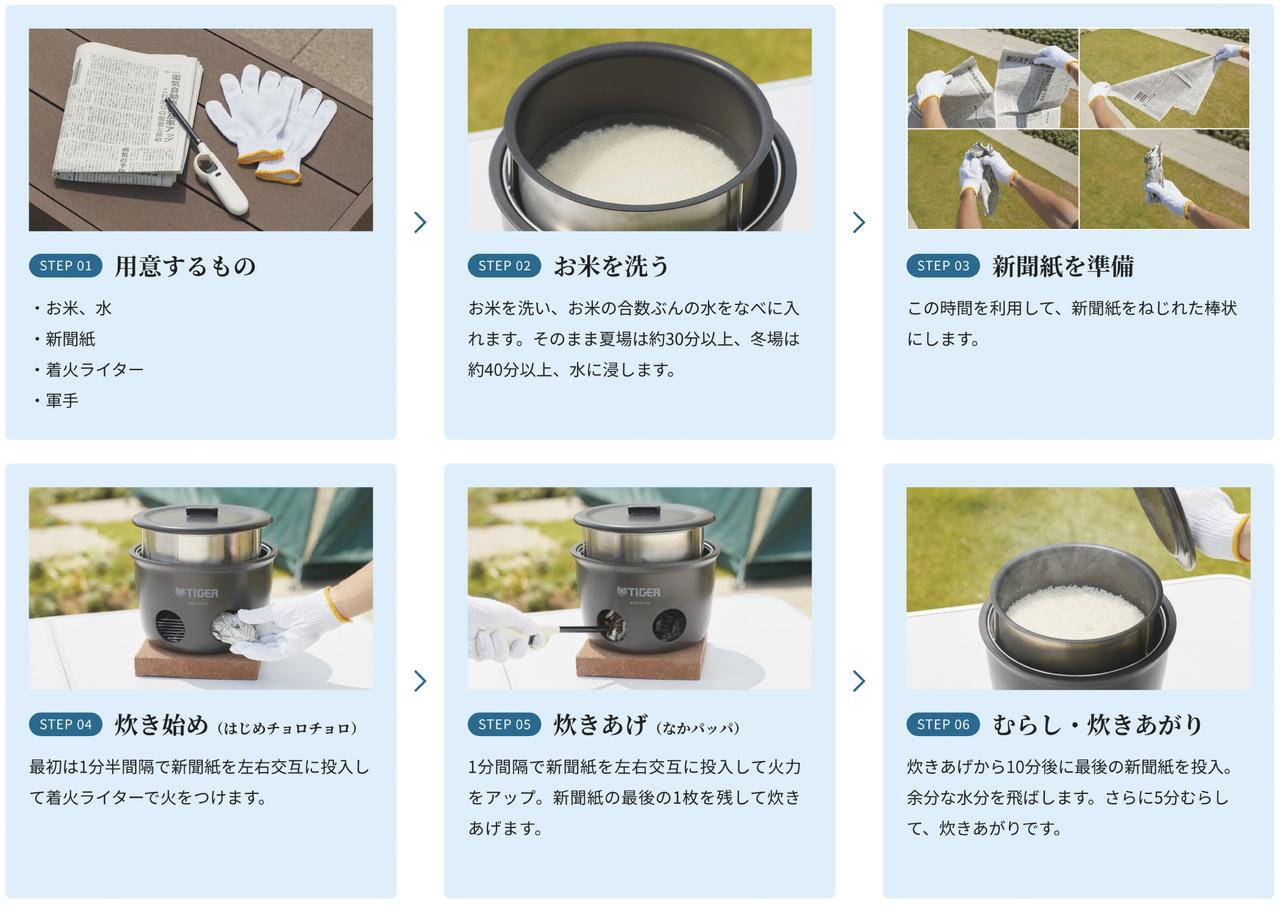 使い方は(白米3合を炊く場合)、新聞紙一部36ページ分をかまどの下部にある2つの穴に交互に新聞紙を入れて点火。その繰り返しで「はじめチョロチョロ、なかパッパ」のおいしい火加減を再現できるという。