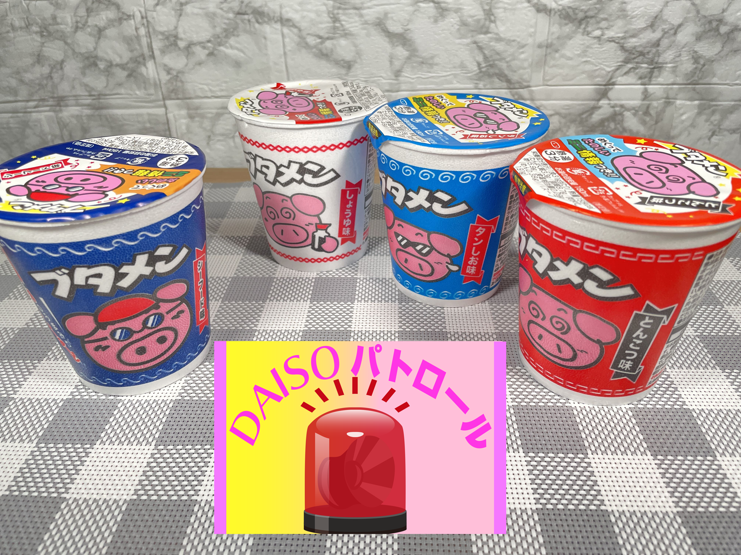 現在ダイソーでは4種類が発売中。『ブタメン シーフード』は2022年12月に登場したロングヒット製品