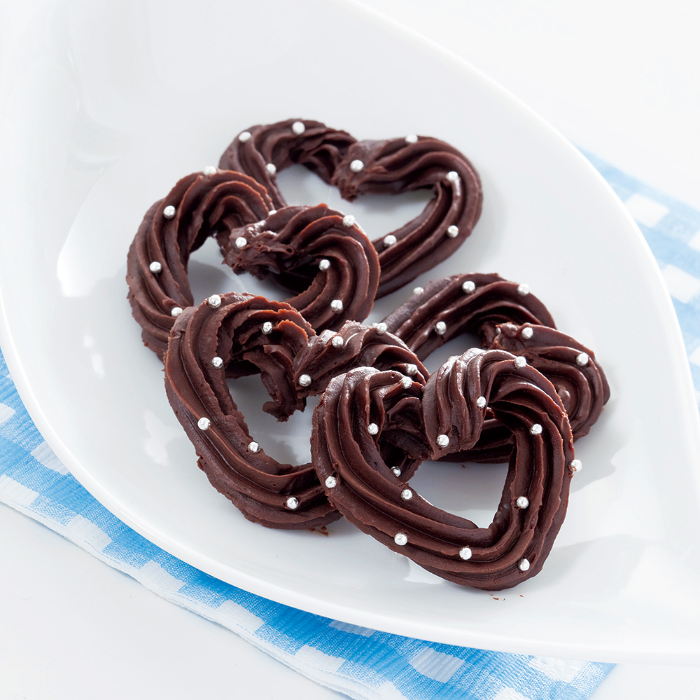 ハートの形に絞り出したトリュフです。アラザンで飾れば、バレンタインデーにぴったり!