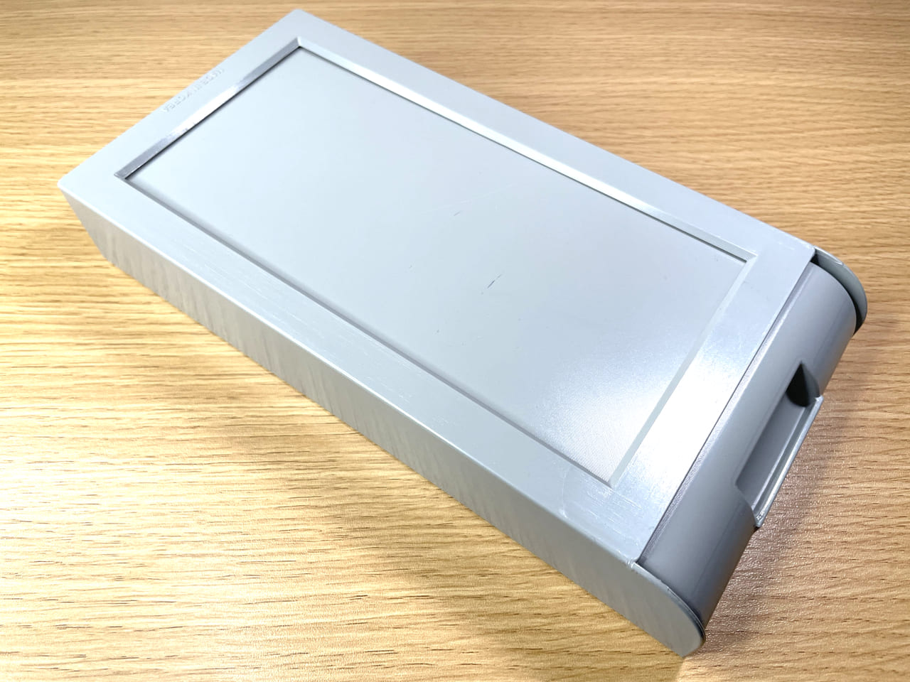 両面テープでテーブル下のデッドスペースに貼り付けるタイプの引き出しで、今回購入したサイズ以外にも、幅9.3×奥行12.5cm高さ4cmの小さめサイズも販売されていた。カラーはグレーとホワイトの2種類あるので、デスクに合わせて選べるのも素晴らしい。