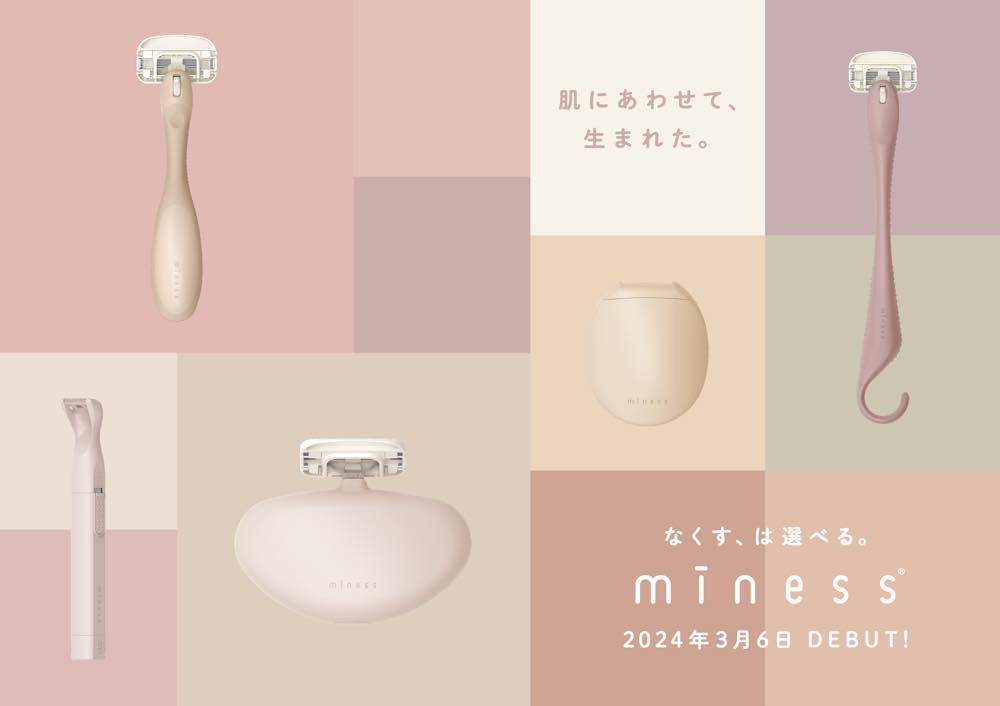 グローバル刃物メーカーの貝印株式会社が、わきや背中、足、手、デリケートゾーンのためのカミソリを、(−)マイナスを(−)マイナスで(+)プラスに変えるというコンセプトのもと、それぞれ開発した結果、「miness(マイネス)」が2024年3月6日発売される(店頭では3月上旬頃から展開予定)。