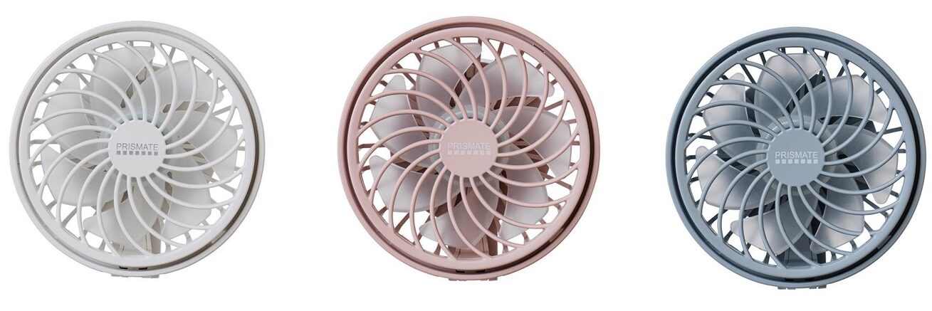 衣類に挟んだり、卓上に置けるなど3通り使える『PRISMATE ハンズフリー3wayファン』