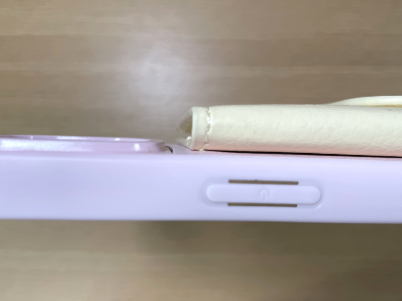 こちらはカードケースが付属したスマホケース。外側に1枚、内側に2枚のカードを収納できる。3枚も収納できるものは珍しいのではないだろうか。写真はPK×IV(ピンク×アイボリー)。パステルピンクだけでもかわいいが、アイボリーが良いアクセントになっていてさらにかわいい!