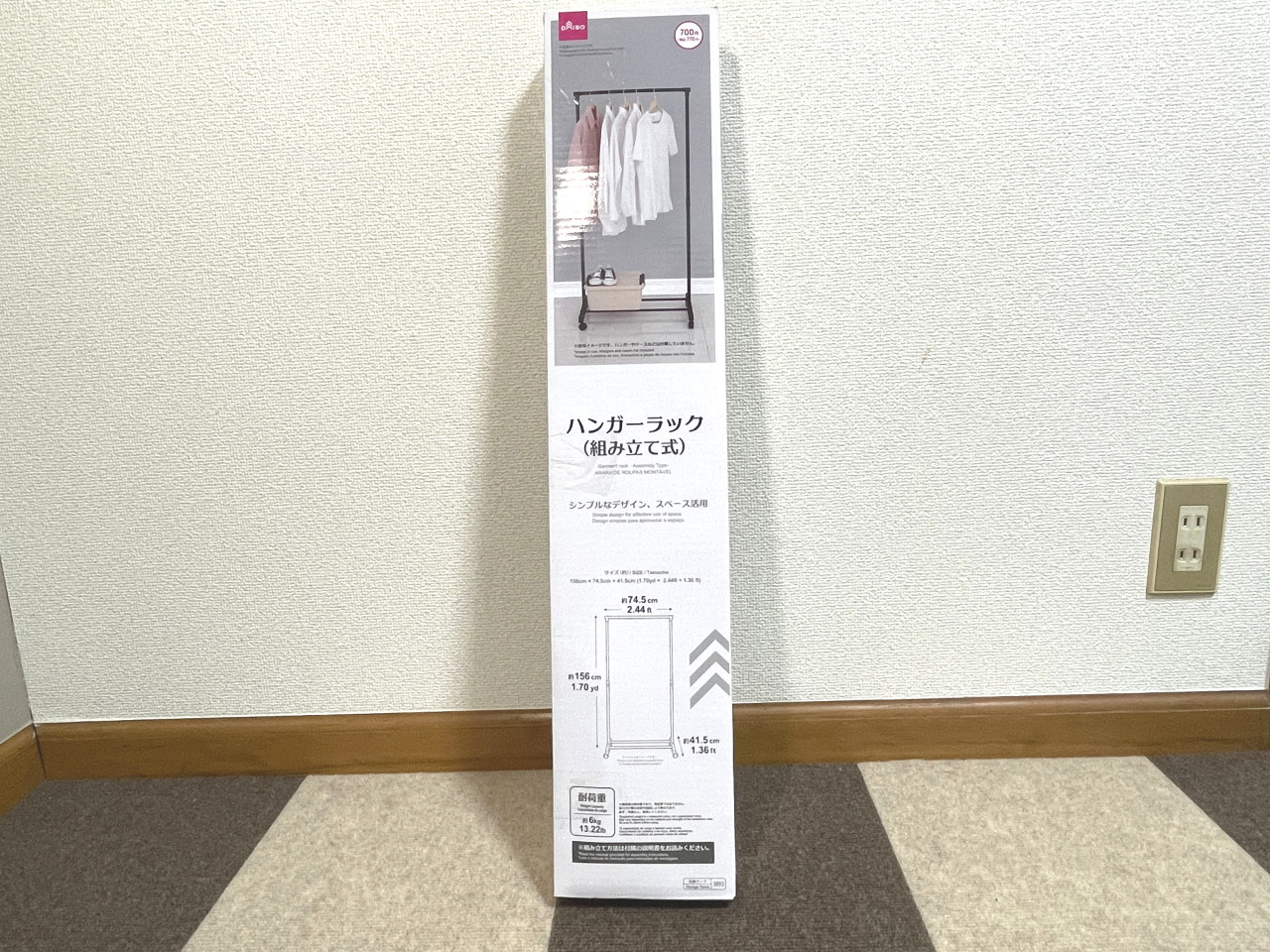 そんな中、いつものようにダイソーをパトロールしていると驚愕の商品と出会った。それが『ハンガーラック(組み立て式)』(1個入・耐荷重 約6kg/組立サイズ 高さ156×幅74.5×奥行41.5cm・1085g・希望小売価格 税込770円・発売中)だ。まさかハンガーラックまで網羅しているとは驚かされる。さっそく購入し、その使い心地をたしかめてみた。