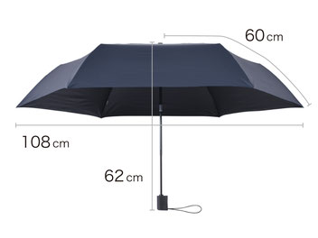 親骨の長さは60cmで直径約108cmのやや大きめサイズながら、重さはわずか260g。収納時の厚みは約25mmとコンパクトで、バッグのすき間に入れやすい。