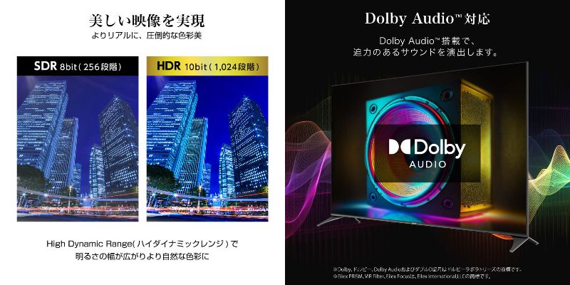 リモコンには各配信サービスに繋がるダイレクトボタンとGoogleアシスタントボタン付き。映像はHDR10を採用、立体音響技術「Dolby Atmos」や、Bluetooth 5.0によるヘッドホンやサウンドバー接続で、臨場感あふれるサウンドも楽しめる。