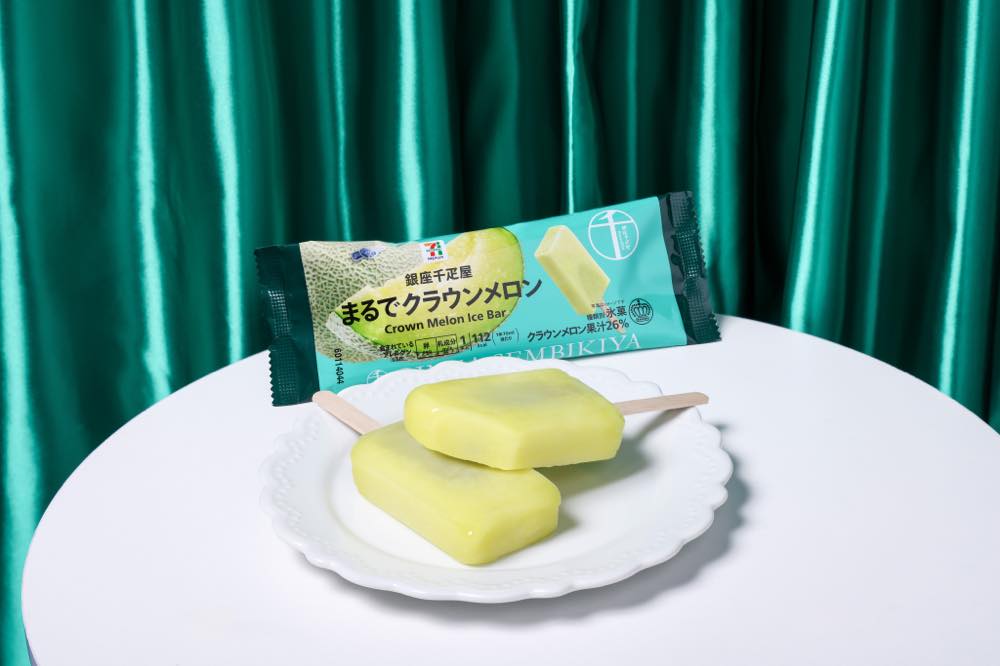 消費トレンド「贅沢志向」を意識して2022年に発売された『セブンプレミアム まるでクラウンメロン』がヒットして実現したコラボで、今回はメロンの最高級品種「静岡県産クラウンメロン」のストレート果汁のみを使用した特別なアイスが登場! 112kcal、糖質27.4g。