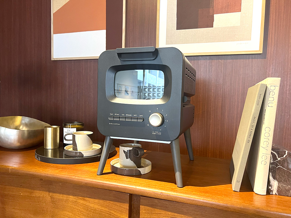 まずは写真を見てください。昭和のブラウン管テレビのようなデザインのレコルト『スライドラックトースターRSR-2LE』(約幅27.0× 奥行35.0×高さ37.5cm/脚は取り外し可能/本体のみ約3.7kg・税込16,500円・2024年5月末発売)。レトロでチャーミングな佇まいに、グッとくる人も多いのではないでしょうか。そもそもトースターは1日の稼働時間が数分〜十分ほどで、使っていない時間の方が圧倒的に長い家電。だったらオシャレにしてインテリアとしても楽しもうというのがレコルトの試みです。