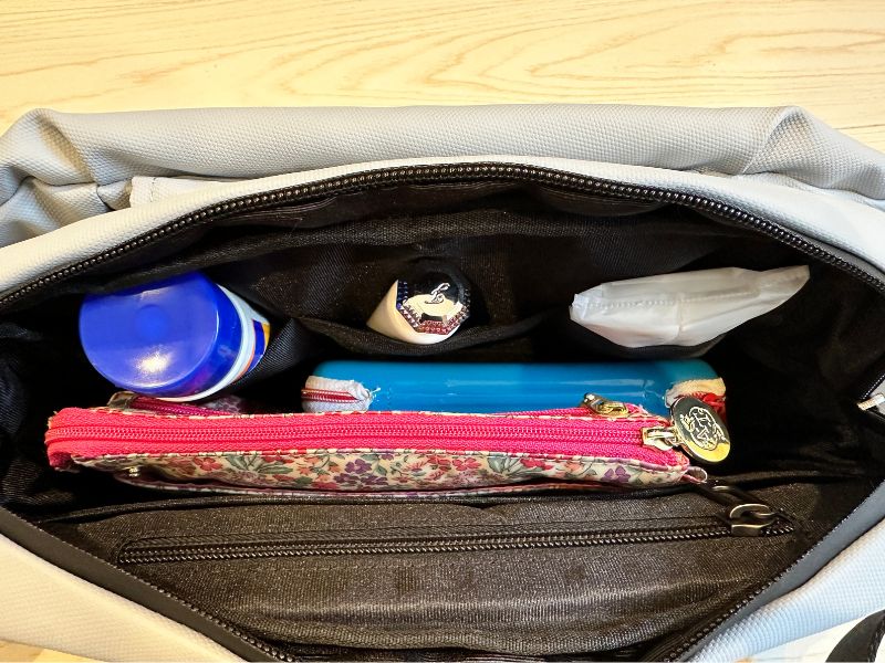 6つのポケットと5つの収納スペースにより、水筒から家の鍵まで、あらゆる小物を整理整頓。 目的のものを探す手間がなくなり、ストレスフリーな使用感を実現しているのが特徴。