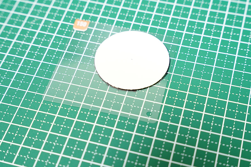 『リア プロソフトン』を切り出す際に線を引くための型紙を厚紙で作り、これを使って『リア プロソフトン』に線を引き、ハサミで切り出します。
