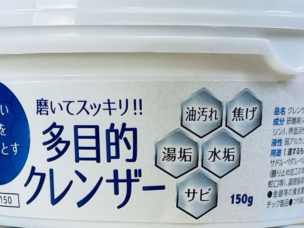 流石にこれはまずいと思いクレンザーを購入しようと思い立ったとき、ダイソーで運命的な出会いをする。それが『多目的クレンザー』(9cm×9cm×4.4cm/150g・希望小売価格 税込110円・発売中)だ。
