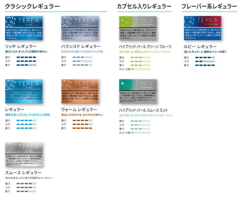 そうした背景から、より紙巻きタバコユーザーが違和感なく楽しめるように開発されたのが、2021年にデバイスの内部構造を一新して登場した「アイコスイルマ」と、専用スティックの「テリア」です(翌2022年には廉価版スティック「センティア」も登場)。