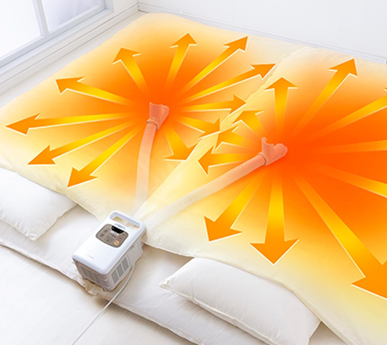 【アイリスオーヤマ カラリエ】2組みの布団を5分で温められるツインノズル搭載の布団乾燥機2>